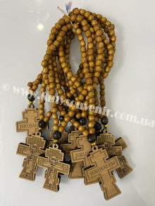 Ці чотки з дерева відрізняються своїм хрестиком. Він виконаний з дерева, з красивим акуратним візерунком, що і робить його цікавим і унікальним. .